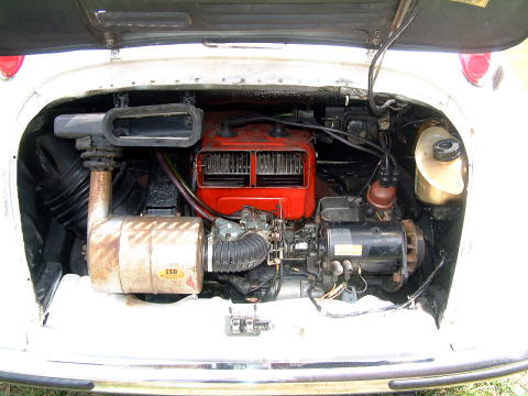 ボンネット内部も左ハンドルのために全ての部品が左右逆です。ネガフィルムを表裏逆に印画してしまったような感じ。塗られてしまって判り辛いですがシリアルプレートは真ん中下にあります。 ちなみに逆輸入スバルは最初の手続きによっては黄色ナンバーになってしまうこともありますが、このクルマは白い小板ナンバー登録です♪ |