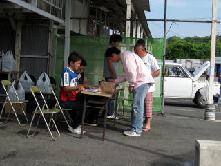 マシンの駐車位置を確保したら受付で エントラントリストとコース図 ゼッケンをもらいます。 今回は37名のエントリー うち4名が・・・なっなんと高校生!! |