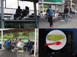 午前のタイムアタック終了後は昼休憩! 時折吹いてくる風がなんとも心地よく ご夫婦でのんびり休憩される方 BBQを楽しむ皆さんetc 思い思いに過ごします(^u^) 右下の写真は・・・ 山中自動車さんから差し入れて頂いた 「メロン」ご馳走様でした!! |