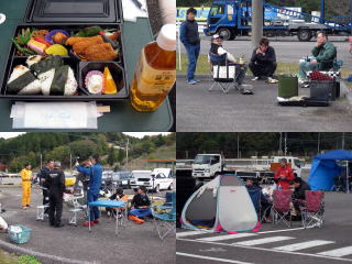 一回目の走行終了後、昼休憩。 BBQを楽しむ方、のんびり歓談される方 そして、テントご持参の方も・・・ 肌寒い一日;小さなお子様連れのご家族には もってこい!ナイスですね☆ |