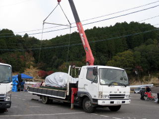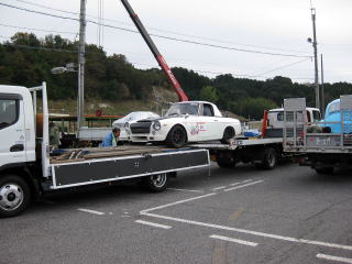 余談ですが・・・ 皆さんクルマ運び方もさまざま ちょっとご紹介! なっ!なんとクレーンでトラックの荷台へ Σ(`ロ´;) |