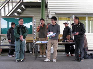 そして・・・・ 遠方からの参加者全員に記念品の授与。 西は京都・東は群馬や埼玉から、 ありがとうございます。 皆さん帰りも長い道のり・・・足つらないように くれぐれもお気を付けて!(笑) |