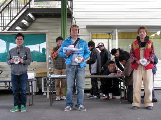 パイロンスラローム優勝者へ ビニール袋に入った賞金の授与(笑) (参加費総取り+主催者からイロ付き!) SEVEN 島村選手おめでとうございました★ |