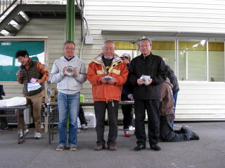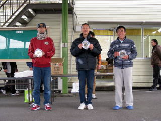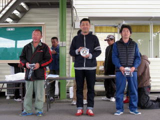 表彰式で〜す! 今回は優勝者のみにお楽しみ景品付き(^^)v ご提供はSRの中島選手にサニー堀選手、 ありがとうございますっ! P70-Tクラス(計5台) 優勝 橋本侑選手 HONDA Z360 2位 小田中健選手 FRONTE 3位 安藤啓治選手 SUBARU360 |