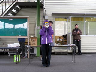 | そして、恒例のジャンケン大会 ジャンケンお姉さんはサニーの 浦野選手の奥さま。 賞品は高級ペーパーウエスや 高級タイヤカバー! |